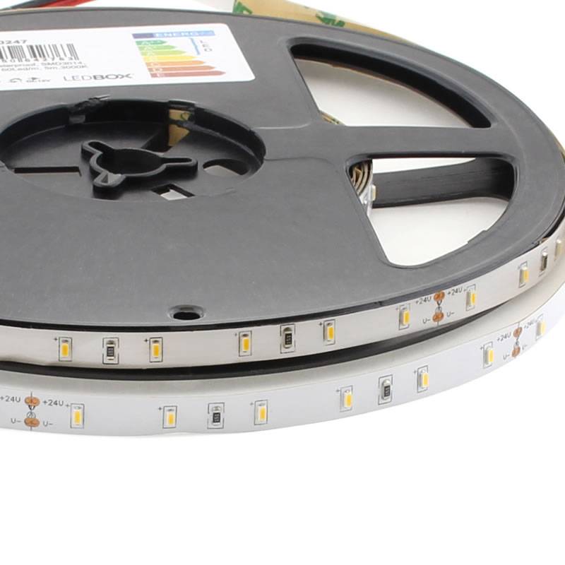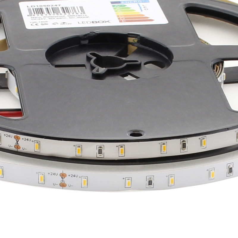 Tira LED Monocolor SMD3014, DC24V, 5m (60 Led/m),30W, IP68 nano waterproof, Blanco cálido