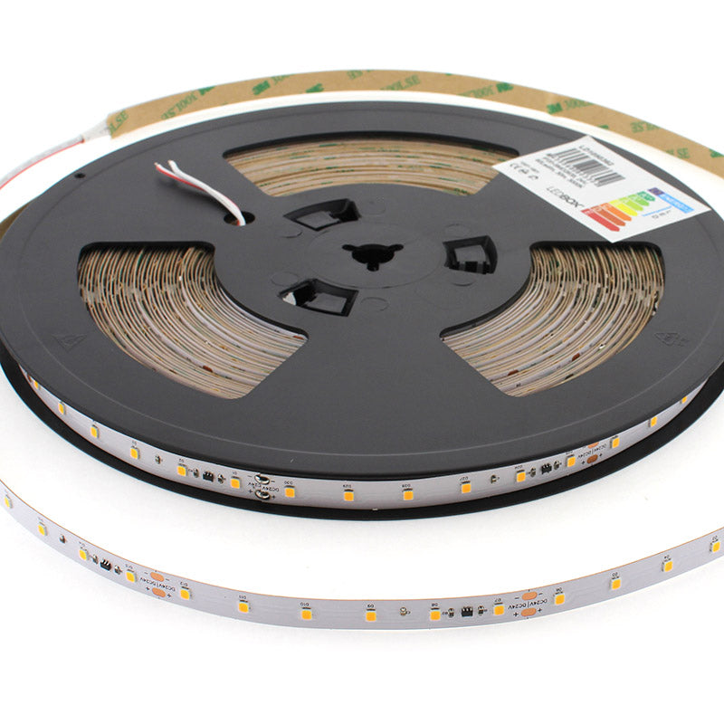 Tira LED de 30 metros de longitud con alimentación DC24V con el nuevo Chip Epistar de alta potencia lumínica SMD2835. Incorpora cinta adhesiva 3M 300LSE de alta adherencia para colocar la tira en cualquier superficie. Para instalaciones profesionales donde se requiera largas tiradas sin caídas de tensión y altas prestaciones.