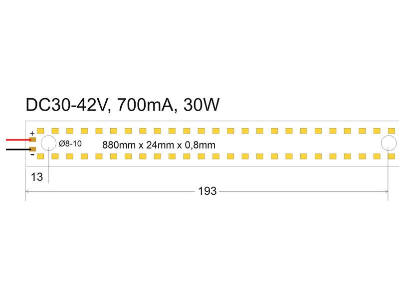Tira LED rígida CC SMD2835, DC30-42V, 700mA, 30W, 880mm, (156Led) - IP20, Blanco cálido