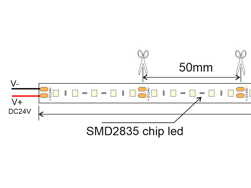 Las tiras flexibles SMD2835 son de alta potencia y brillo. Ofrece una luminosidad de 100lm/w, por lo que la tira LED SMD2835 es la más adecuada para instalaciones con altos requerimientos de luminosidad ya que su costo por lumen es más bajo. Para evitar caídas de tensión se recomienda alimentar la tira de 20 metros por ambos extremos.