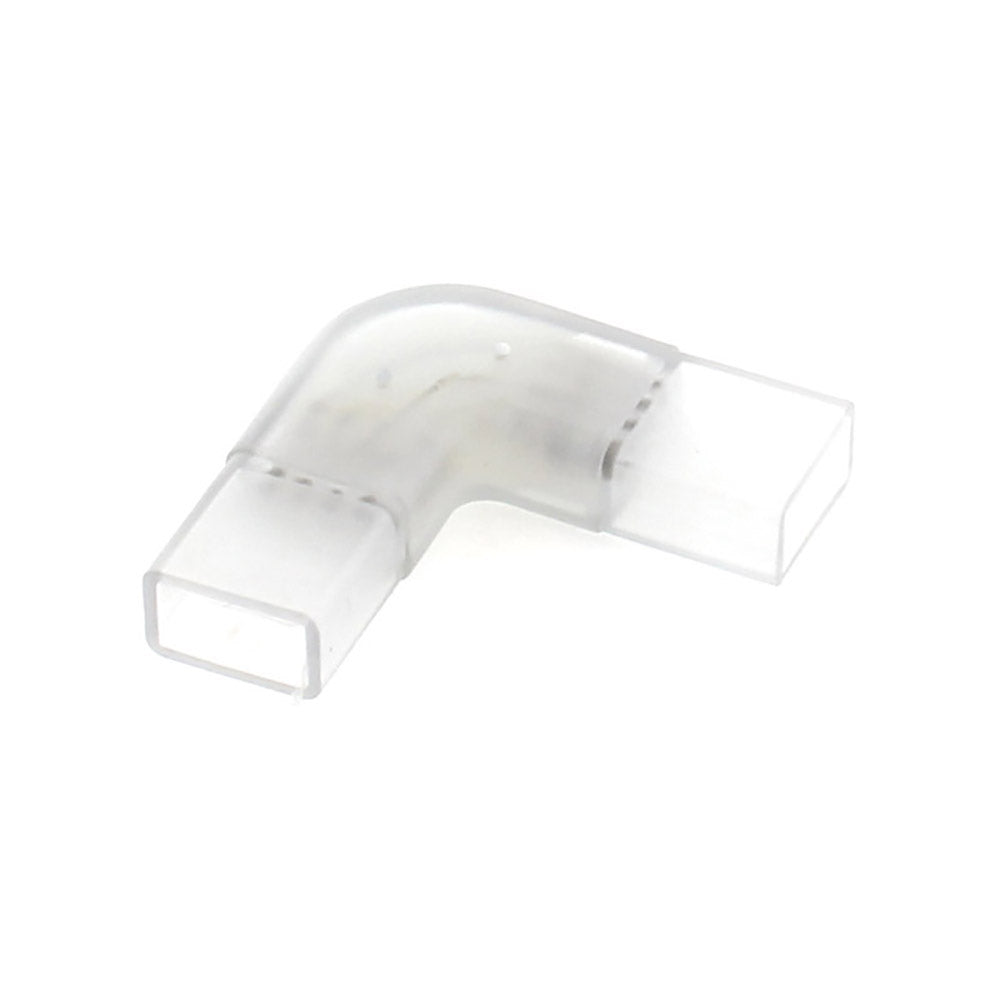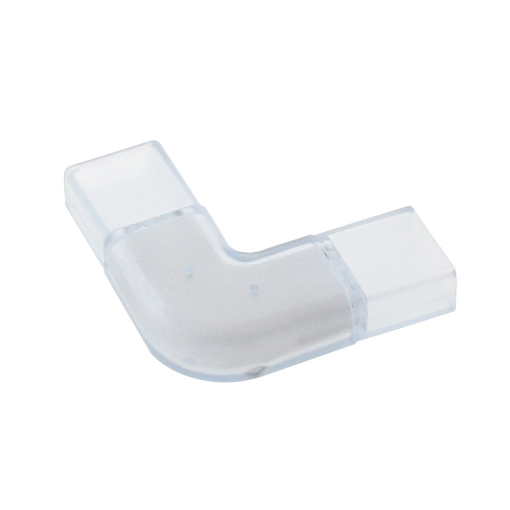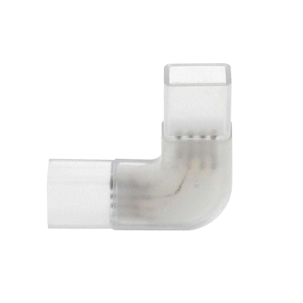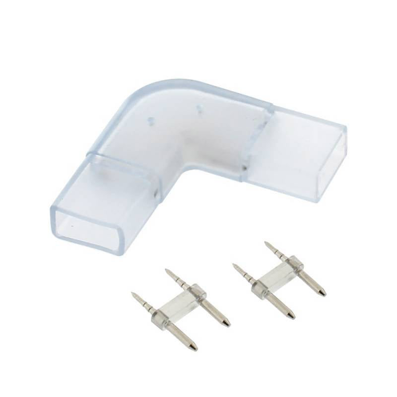 Conector en forma de L que permite la unión entre diferentes tramos de tira led 220V con facilidad y seguridad. Se pueden unir tramos de tira monocolor de colores distintos o del mismo color. Incluye Pins de conexión.