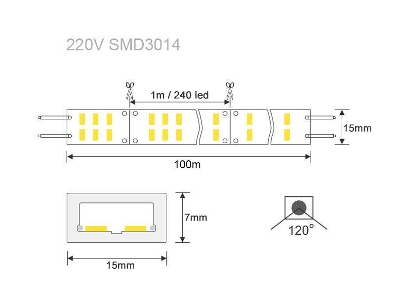 Tira LED 220V SMD3014 doble, 240Led/m, 1 metro, Blanco frío