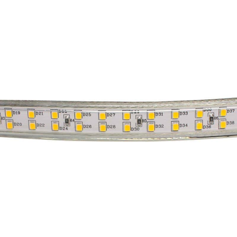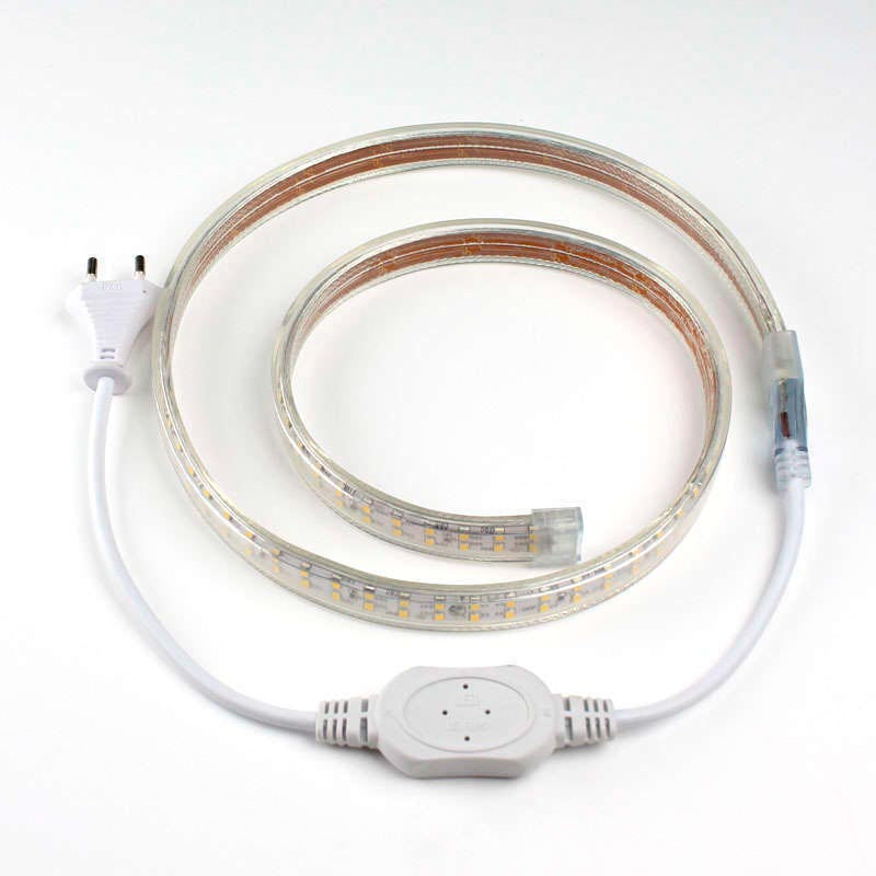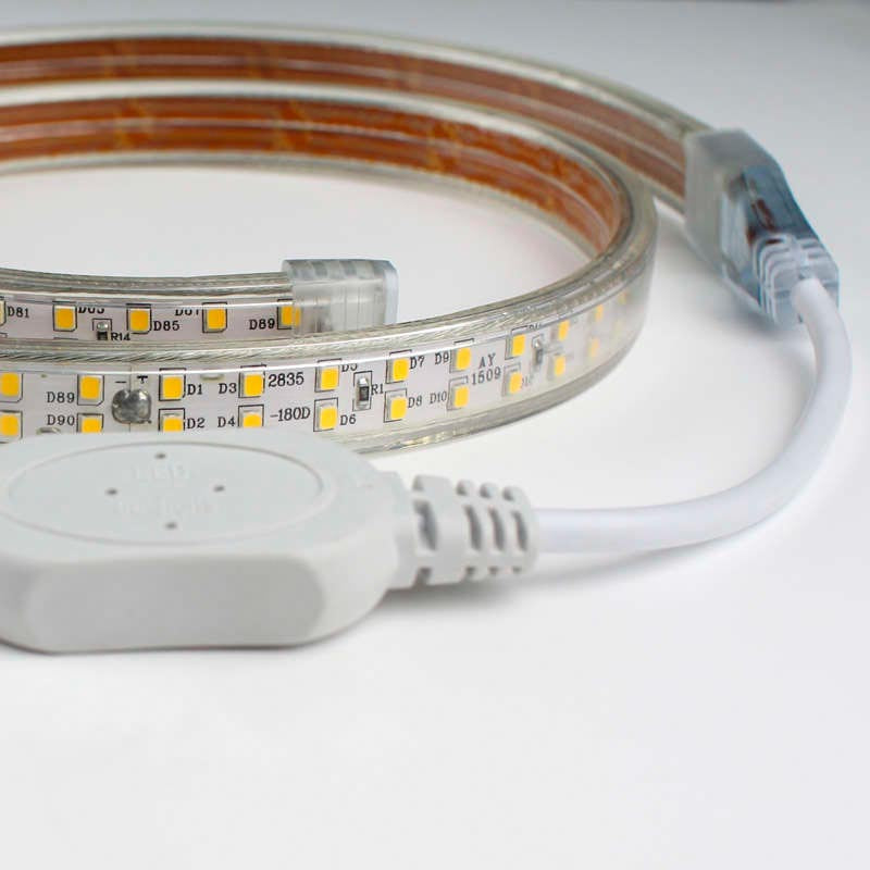 Las tiras de LED flexible de alta tensión se conectan directamente a la red eléctrica de 220V mediante un alimentador, están fabricadas con componentes de alta calidad, permite una alta disipación del calor y son impermeables gracias a la cubierta transparente de PVC.