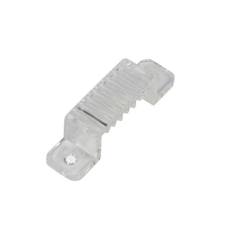 La grapa de fijación de PVC para tira LED 220V permite fijar de manera segura la tira a cualquier superficie. La grapa tiene la medida exacta para este tipo de tira y son transparentes.