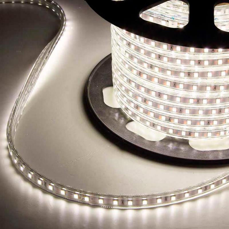 Las tiras de LED flexible de alta tensión se conectan directamente a la red eléctrica de 220V mediante un alimentador, están fabricadas con componentes de alta calidad, permite una alta disipación del calor y son impermeables gracias a la cubierta transparente de PVC.