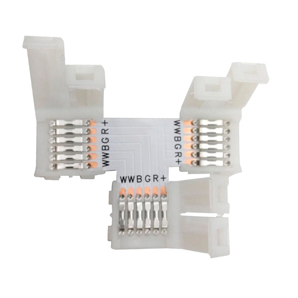 Unión / conector T rígido Pin Click para tiras LED RGB+CCT 6 pin