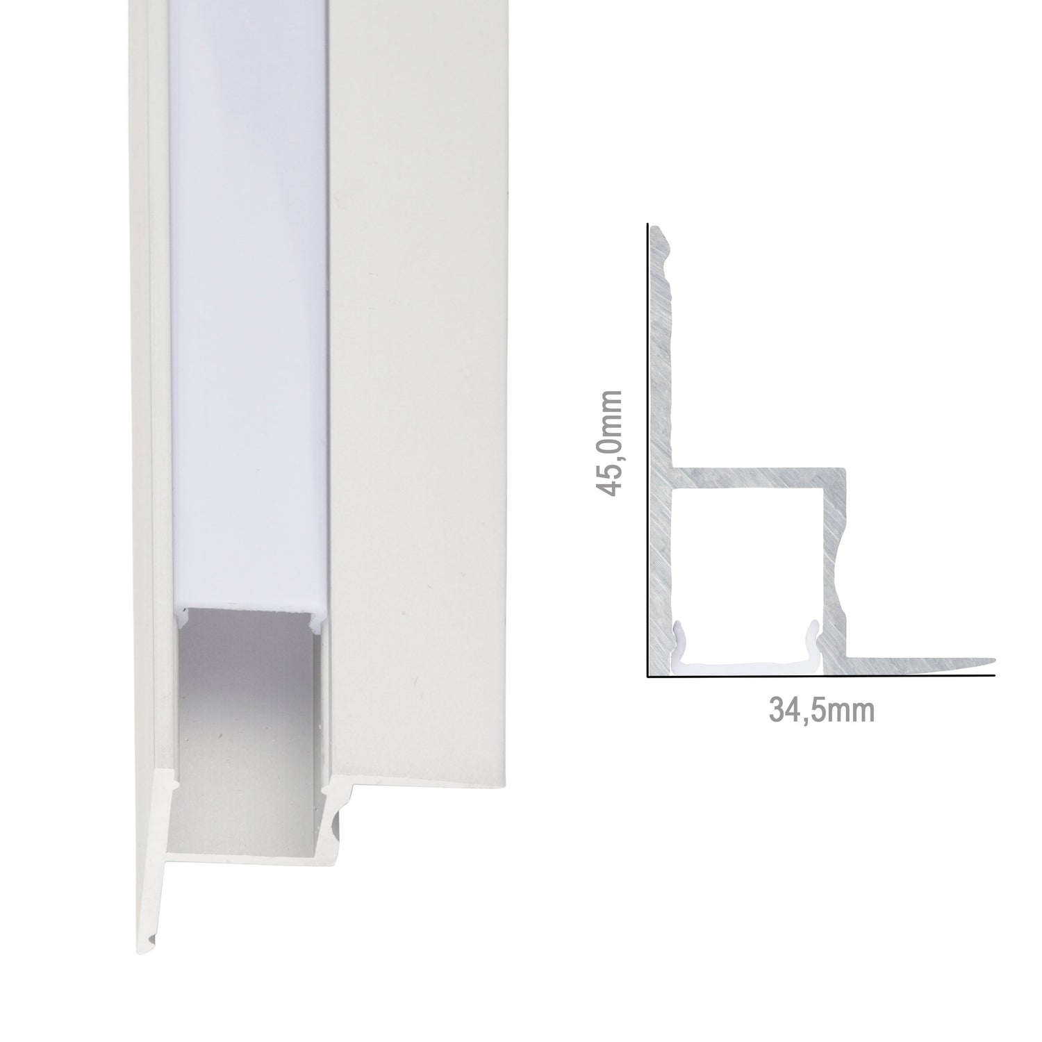 Perfíl de Aluminio para LEDS Instalación Techos Falsos - Difusor Opal -Tira de 1 Metro