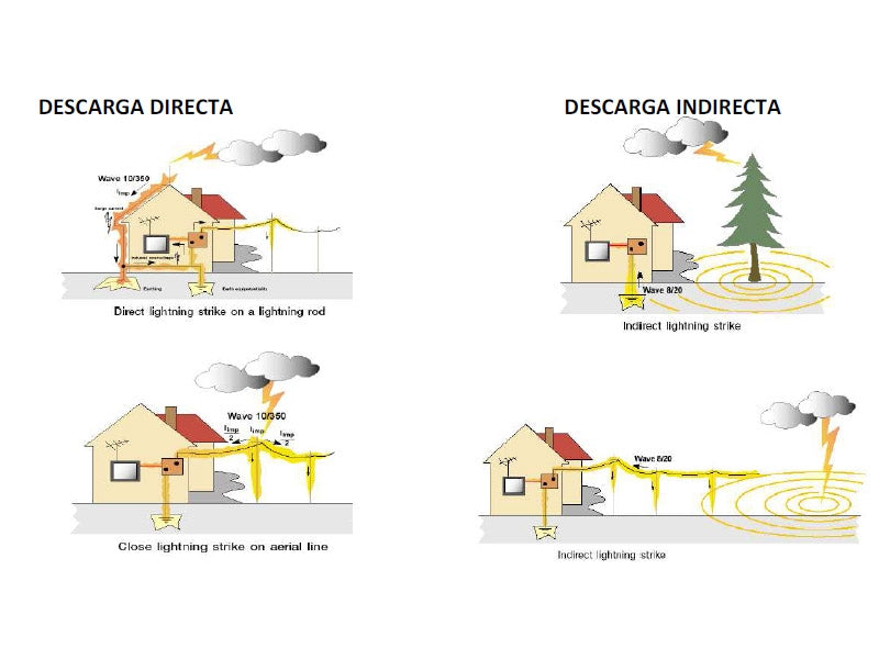 Las descargas directas son aquellas que impactan sobre los equipos o en un radio próximo. Las descargas indirectas son aquellas inducidas por un rayo y que afectan a nuestra instalación.