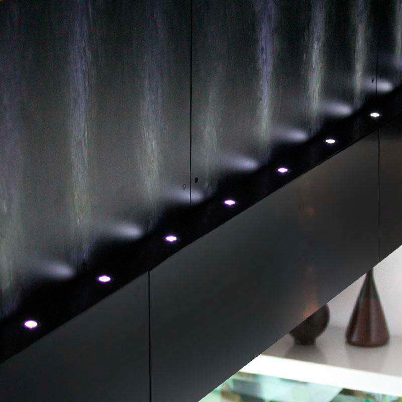 Downlight Led empotrable de reducido tamaño y casquillo GX5,3. Ideal para crear cortinas de luz e iluminación de objetos. Mínima emisión de calor y consumo. Foco downlight para la decoración con luz en hogares y centros comerciales. Uso frecuente en pasillos o armarios.