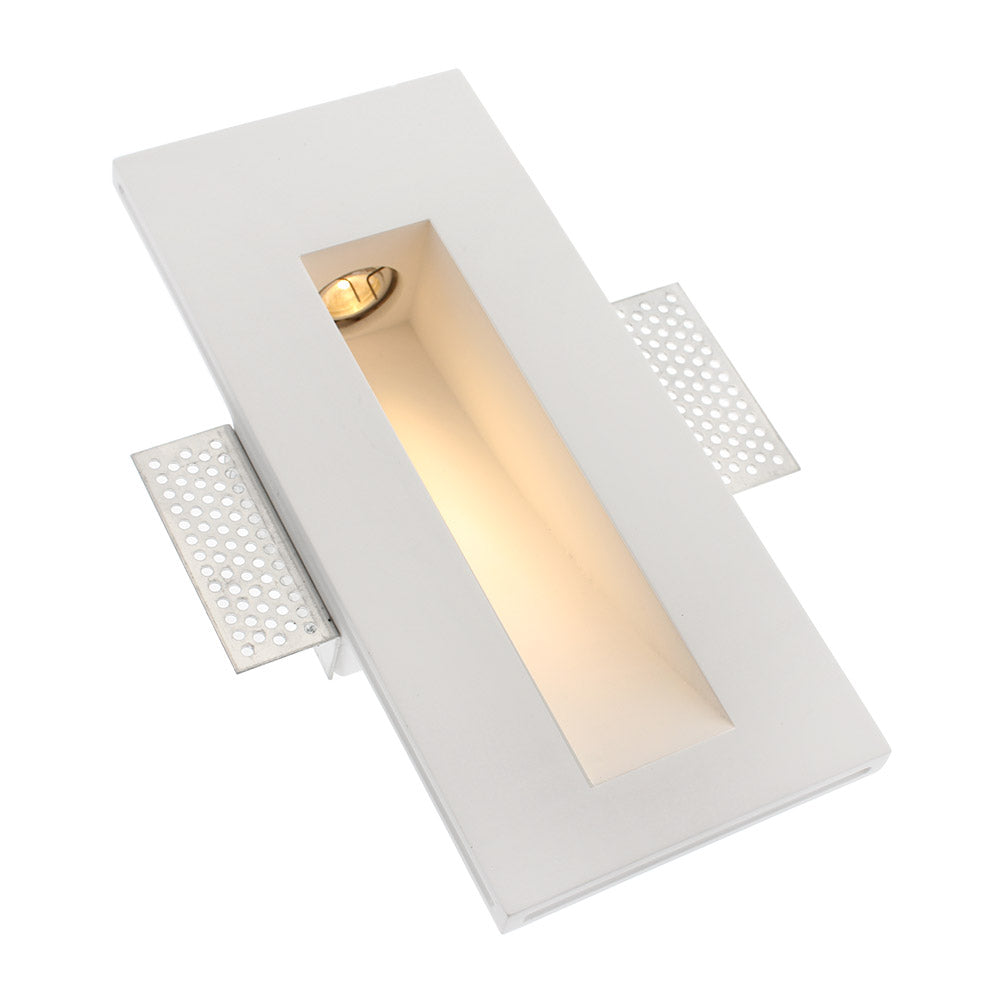 Baliza empotrable fabricado en escayoda con led  y driver incluido. Con alas de sujección para una perfecta instalación enrasada con la superficie. Crea ambientes únicos y sofisticados en la decoración de cualquier ambiente. Instalación sencilla, el material se puede emplastecer y pintar.
