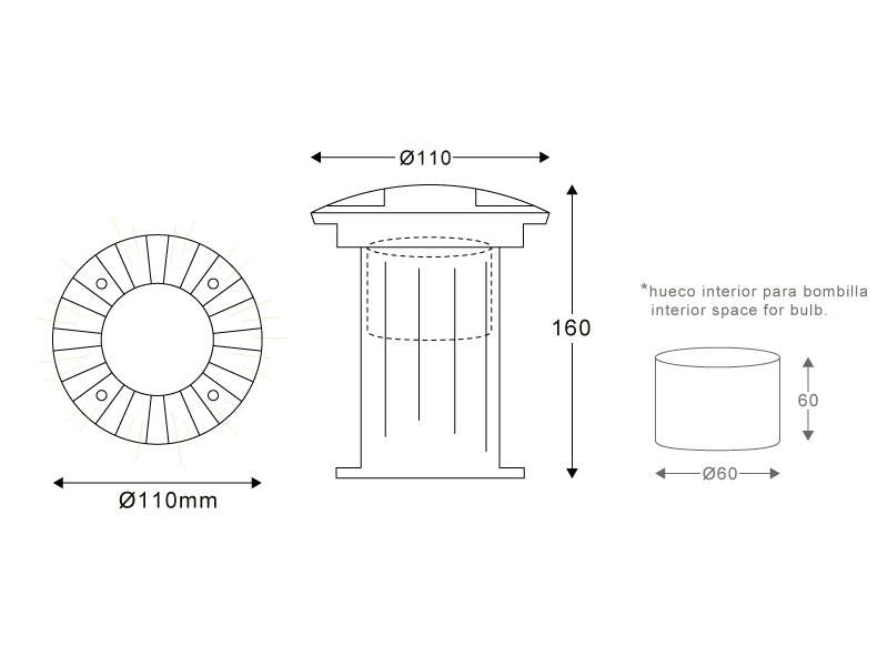 Baliza Skub 12s, foco para empotrar en el suelo de gran calidad para bombillas led. Fabricado en acero inoxidable y gran resistencia que permite soportar el paso de vehículos. Con grado de protección IP67.