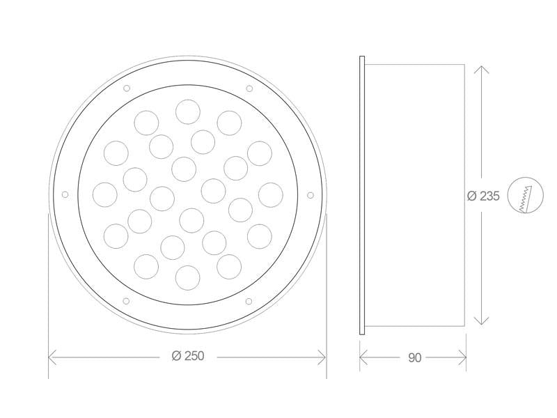 Baliza Led para empotrar en suelos en exterior. Foco Led de 24W de potencia de bajo consumo para la ambientación de cualquier espacio exterior. Alto índice de reproducción cromática (CRI) y fuerte grado de protección IP67. Ideal para la instalación en suelos de terrazas, jardines, caminos.