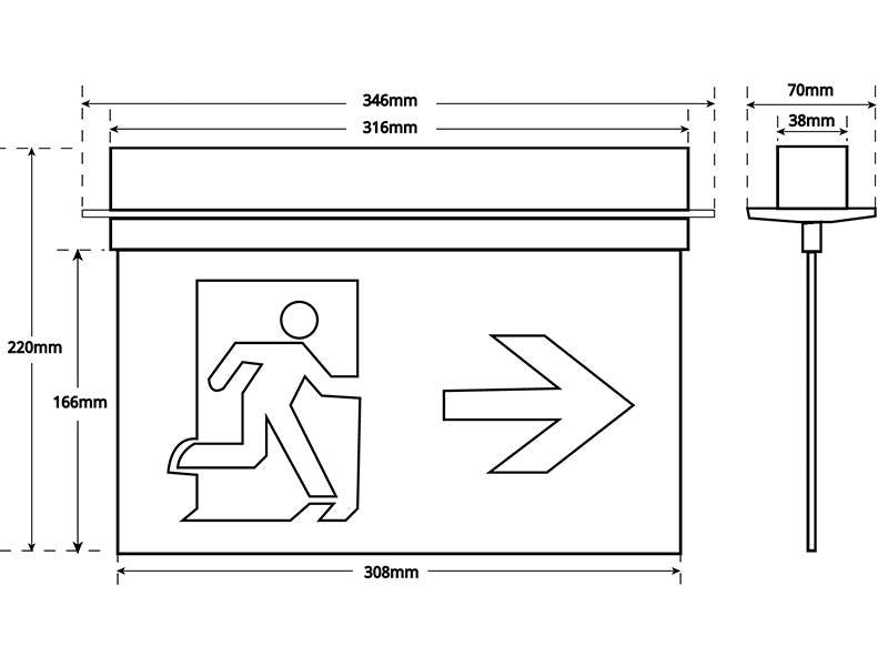 Luz de señalización y emergencia con tecnología LED. Ofrece Luz de forma permanente iluminando la señalética en todo momento. Con metacrilato óptico transparente para colocar señalética personalizada.