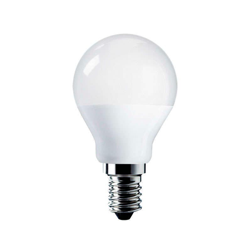 Bombilla LED tipo globo con acabado frost para casquillos convencionales E14. Ahorro de hasta el 90% en su consumo de luz.