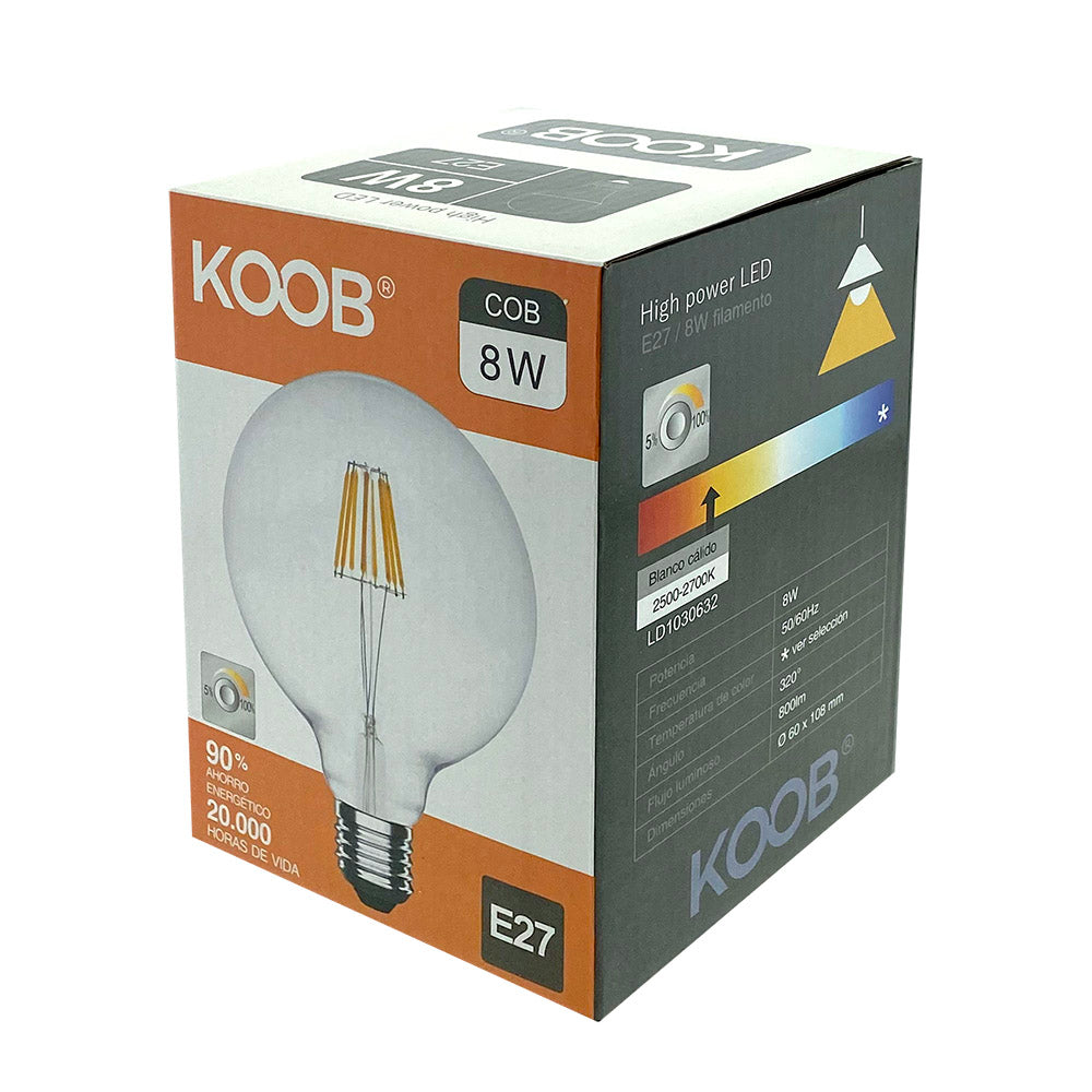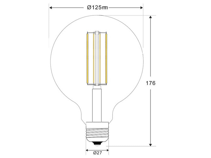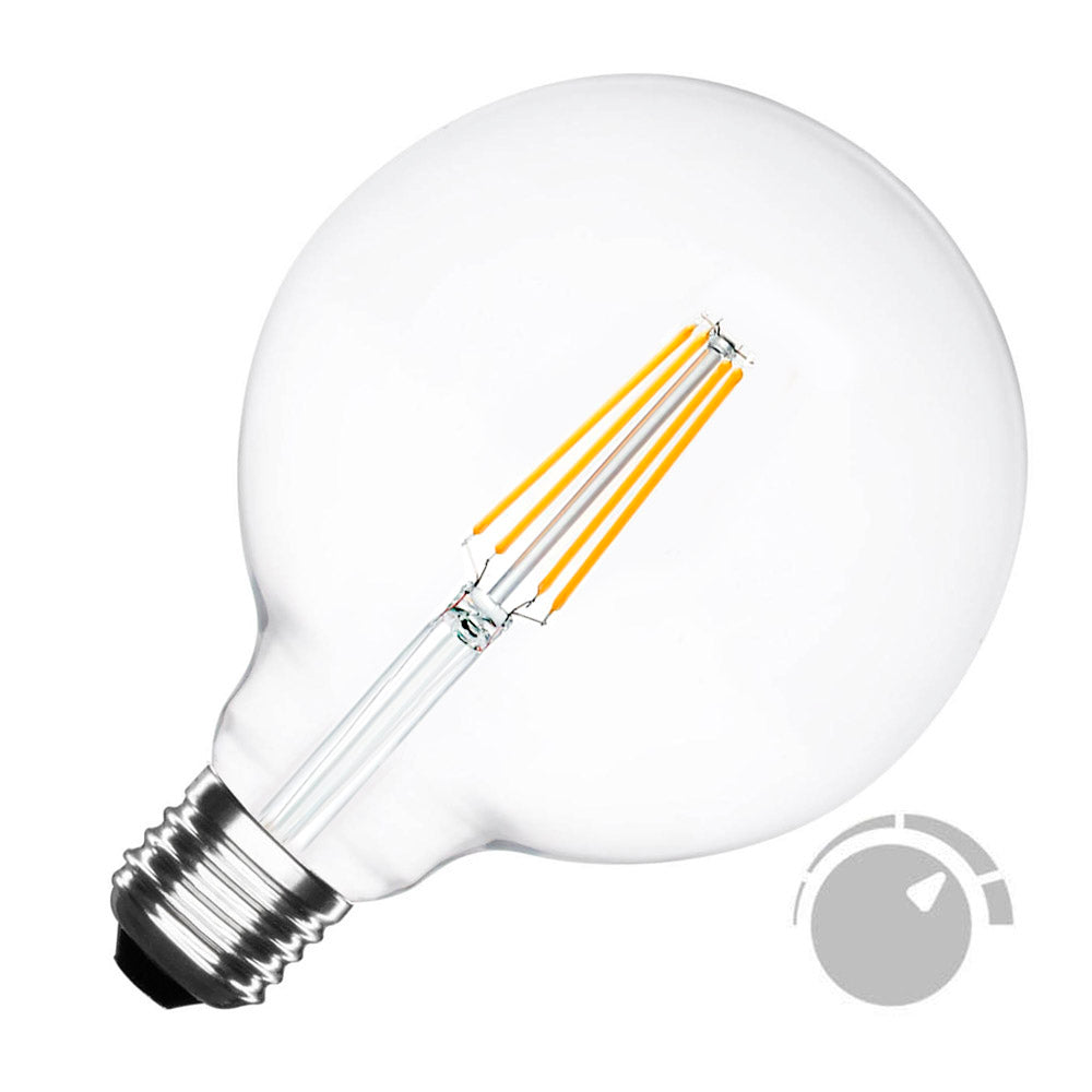 Bombilla Led E27 COB filamento 8W, Ø125x176mm, Regulable, Blanco cálido, regulable