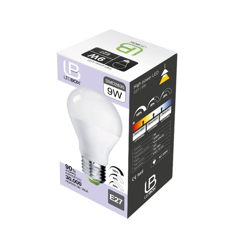 Bombilla LED E27, 240º, 9W, Regulable 100-50-20%, Blanco frío, regulable