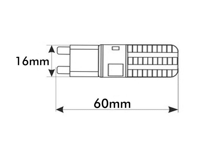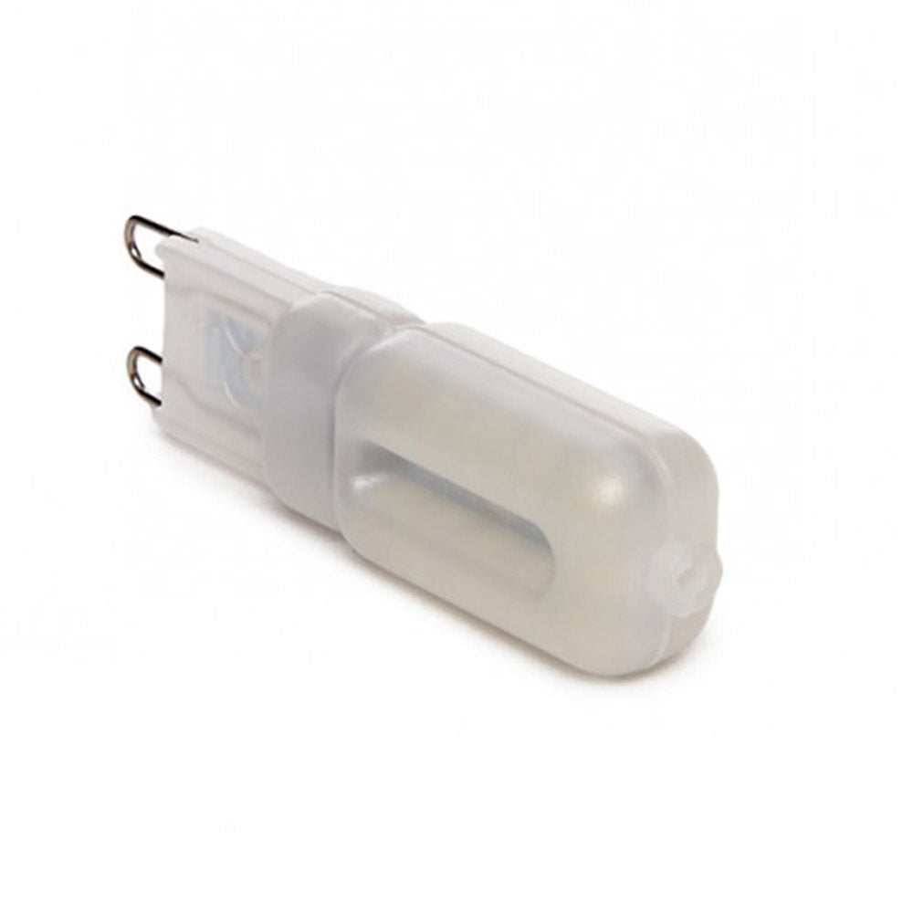 Bombilla LED de base G9. Puede sustituir bombillas tipo bi-pin o mini bombillas G9 con la misma intensidad de luz consiguiendo un ahorro de más del 80%. Se emplea en espacios muy reducidos y no desprenden calor.