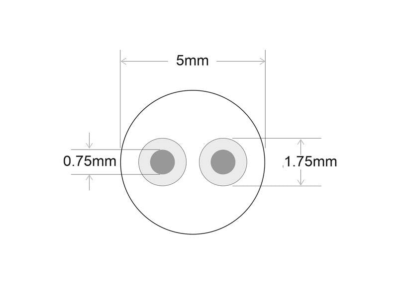 Cable 2x0.75mm redondo con cubierta transparente de 2 hilos color silver, longitud 60cm, con conector DC hembra DC5.5*2.1.