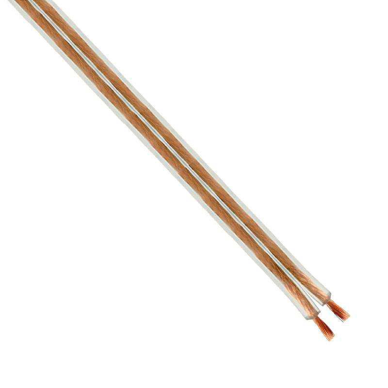 Cable eléctrico con cubierta transparente de 2 hilos color cobre dorado.