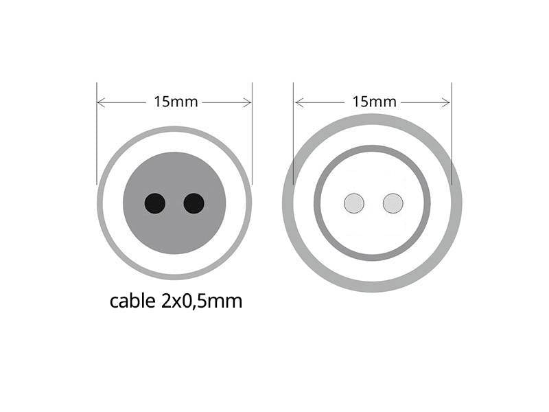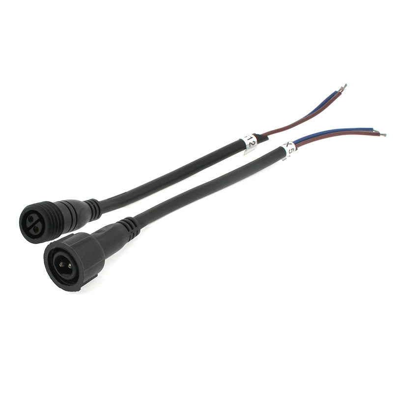 Cables conexión (macho y hembra) de 2 Pinx0,5mm, con 20cm de longitud cada cable, con protección IP66, color negro.