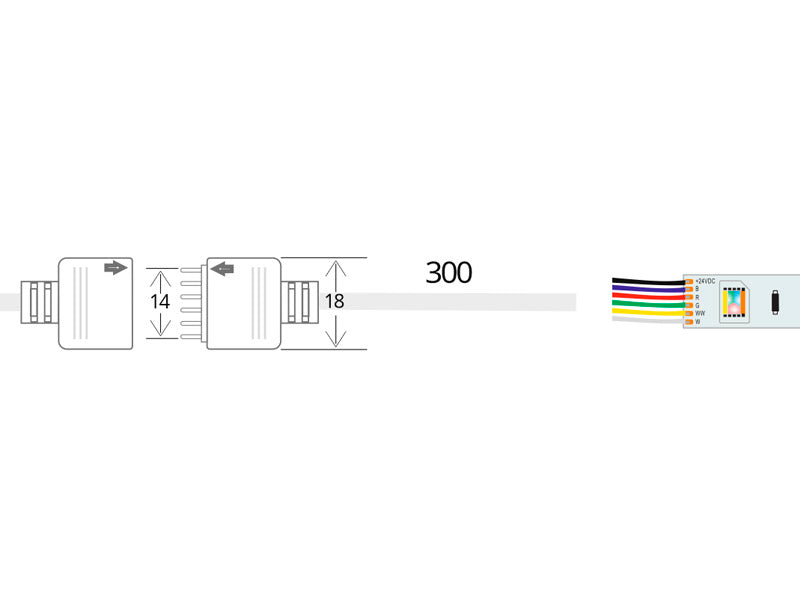 Cable redondo conexión macho 6 Pin 14mm RGB+CCT, 30cm, blanco