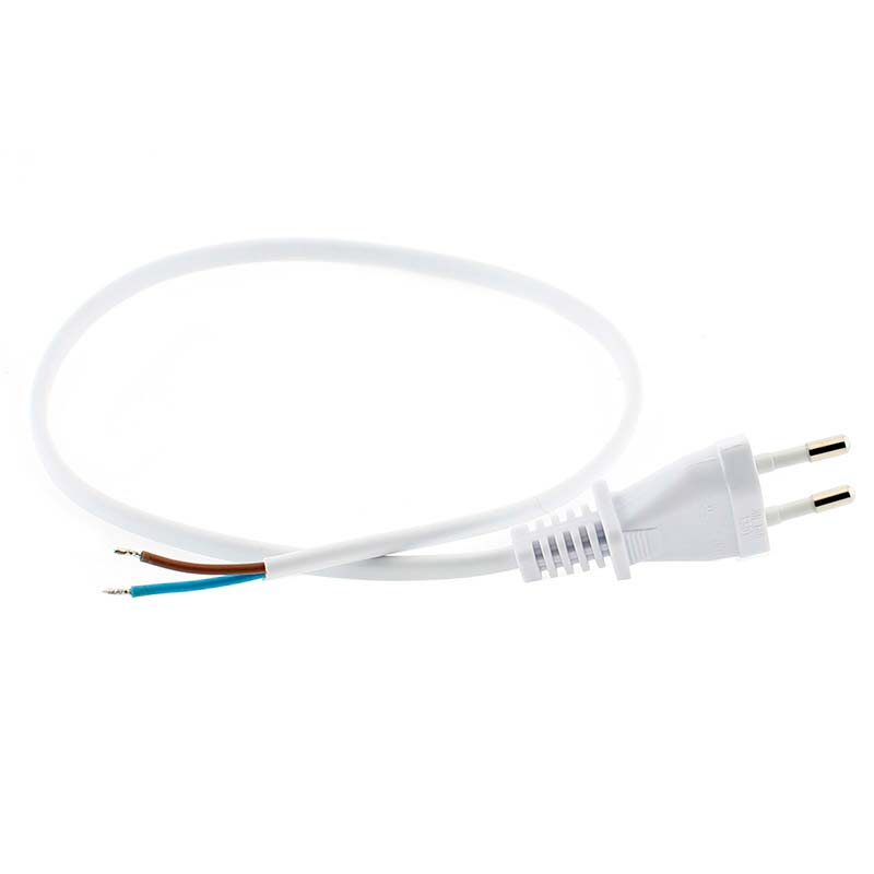 Cable de color blanco con dos cables de 0,75mm y 50cm de longitud. Con clavija EU.