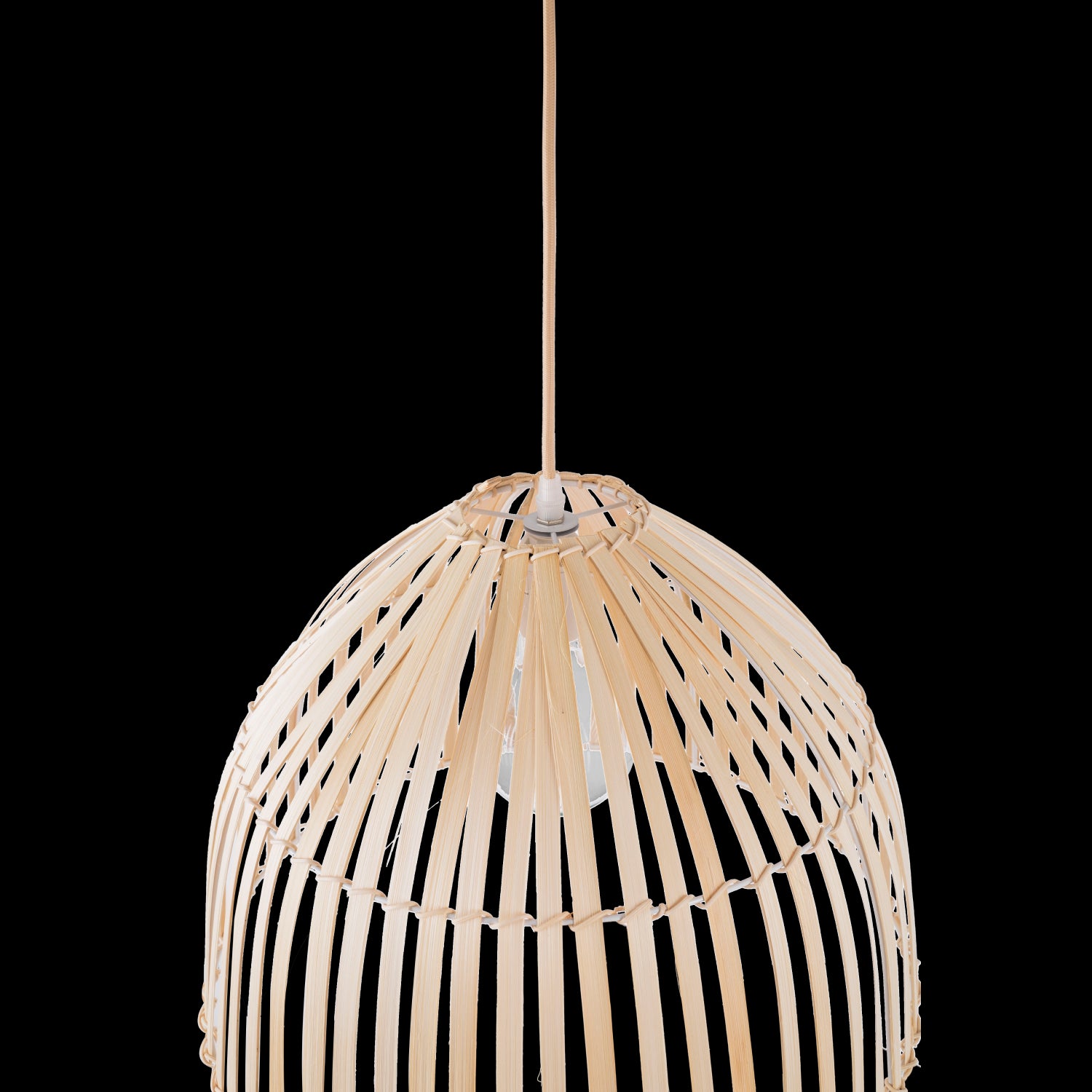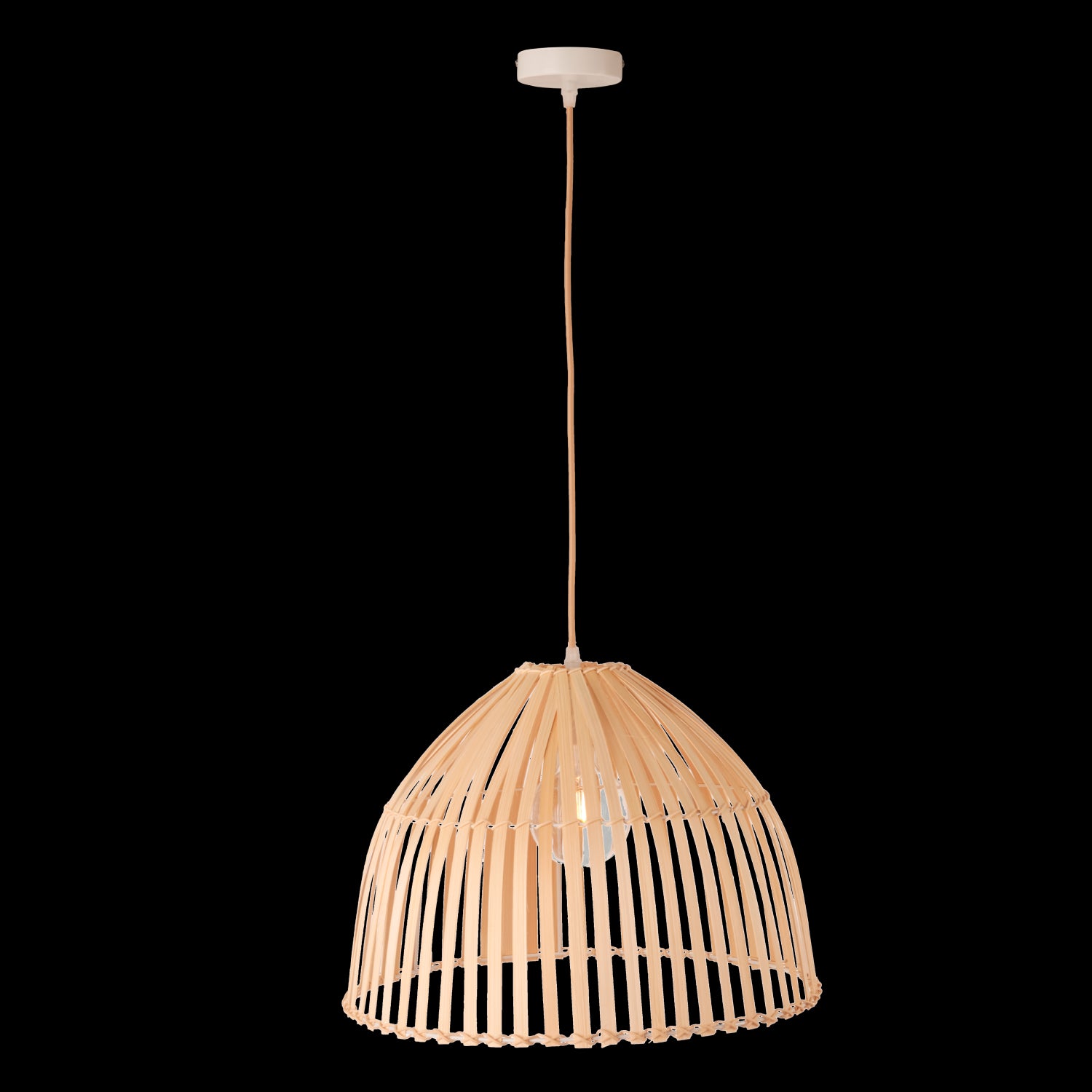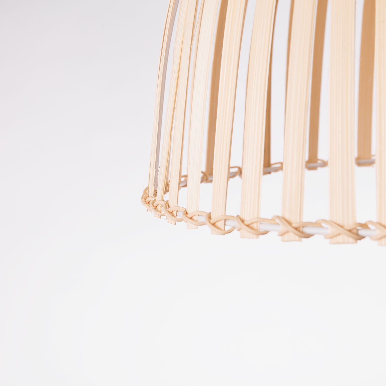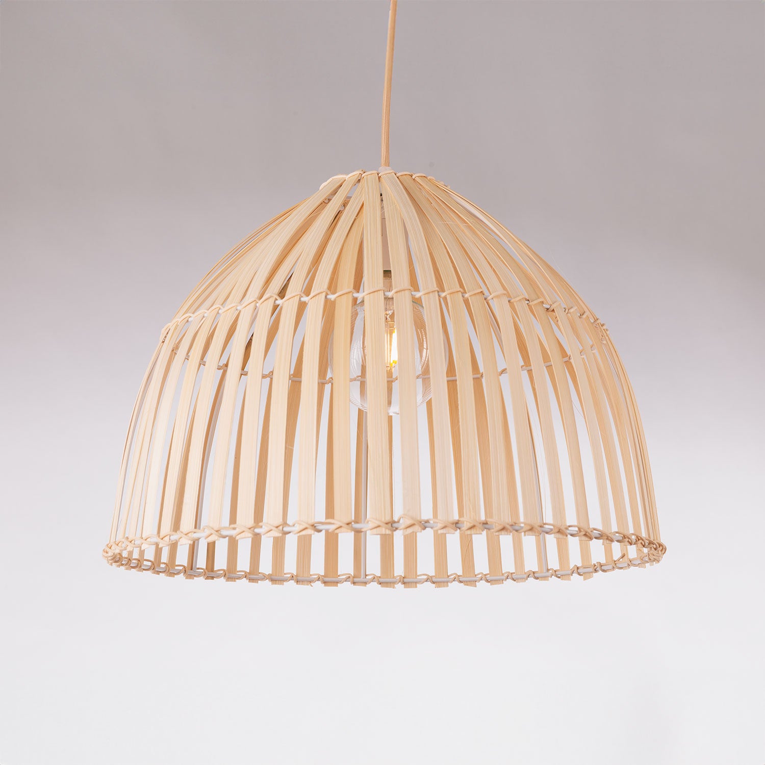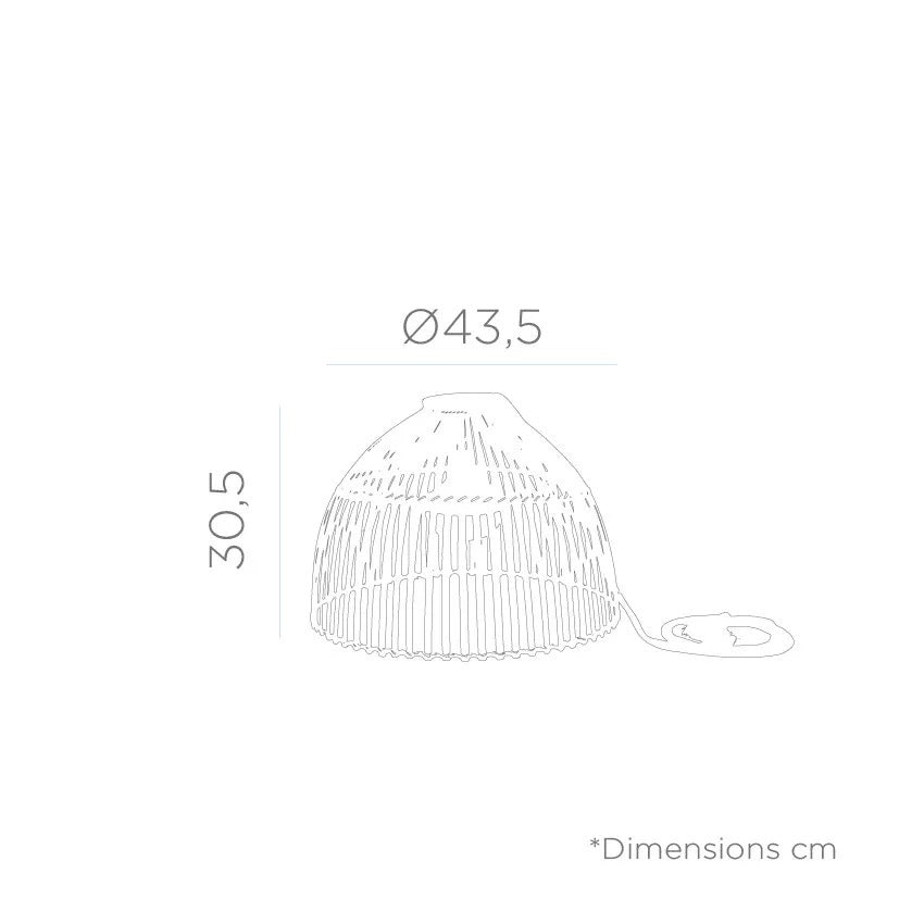 Esta lámpara está fabricada en ratán, un material natural de aspecto muy similar al bambú, pero con mejores propiedades de resistencia y elasticidad.