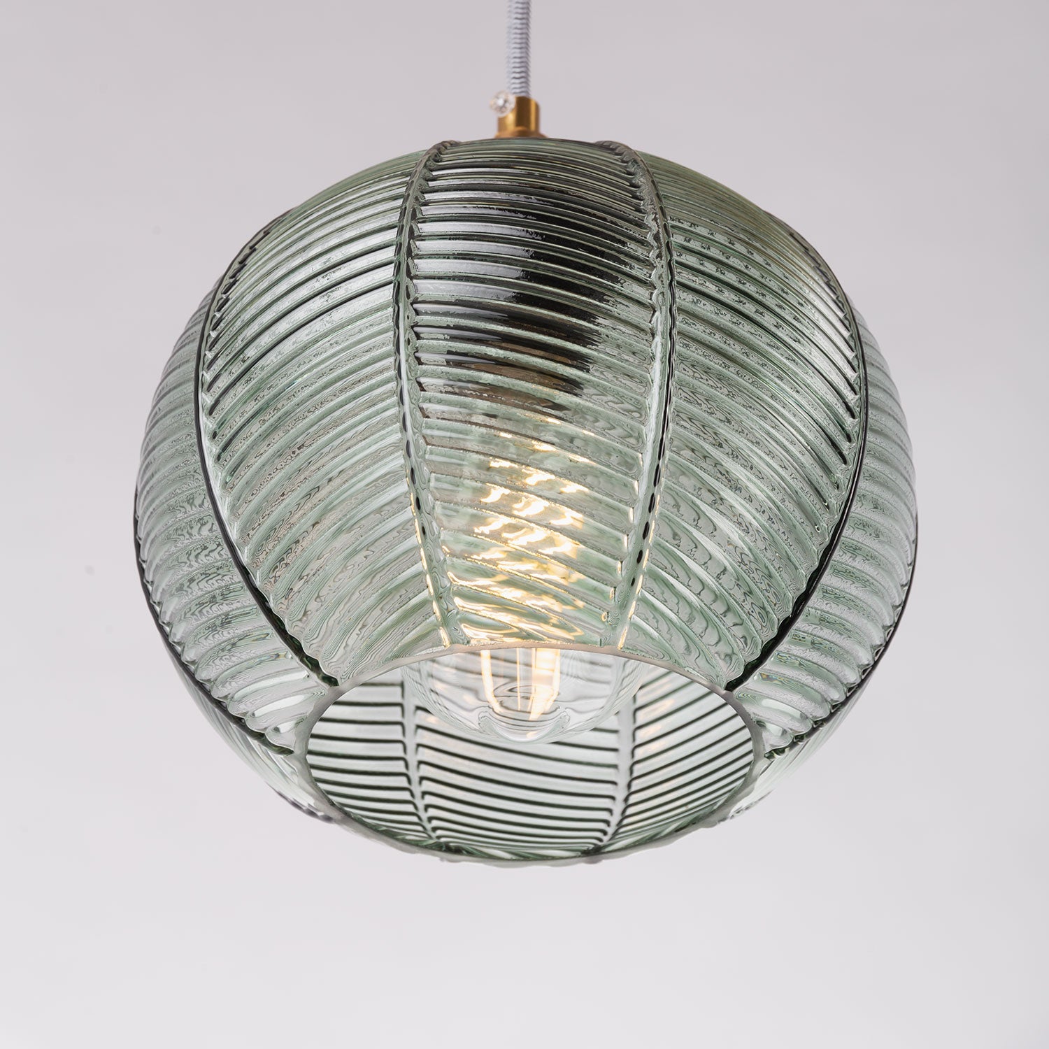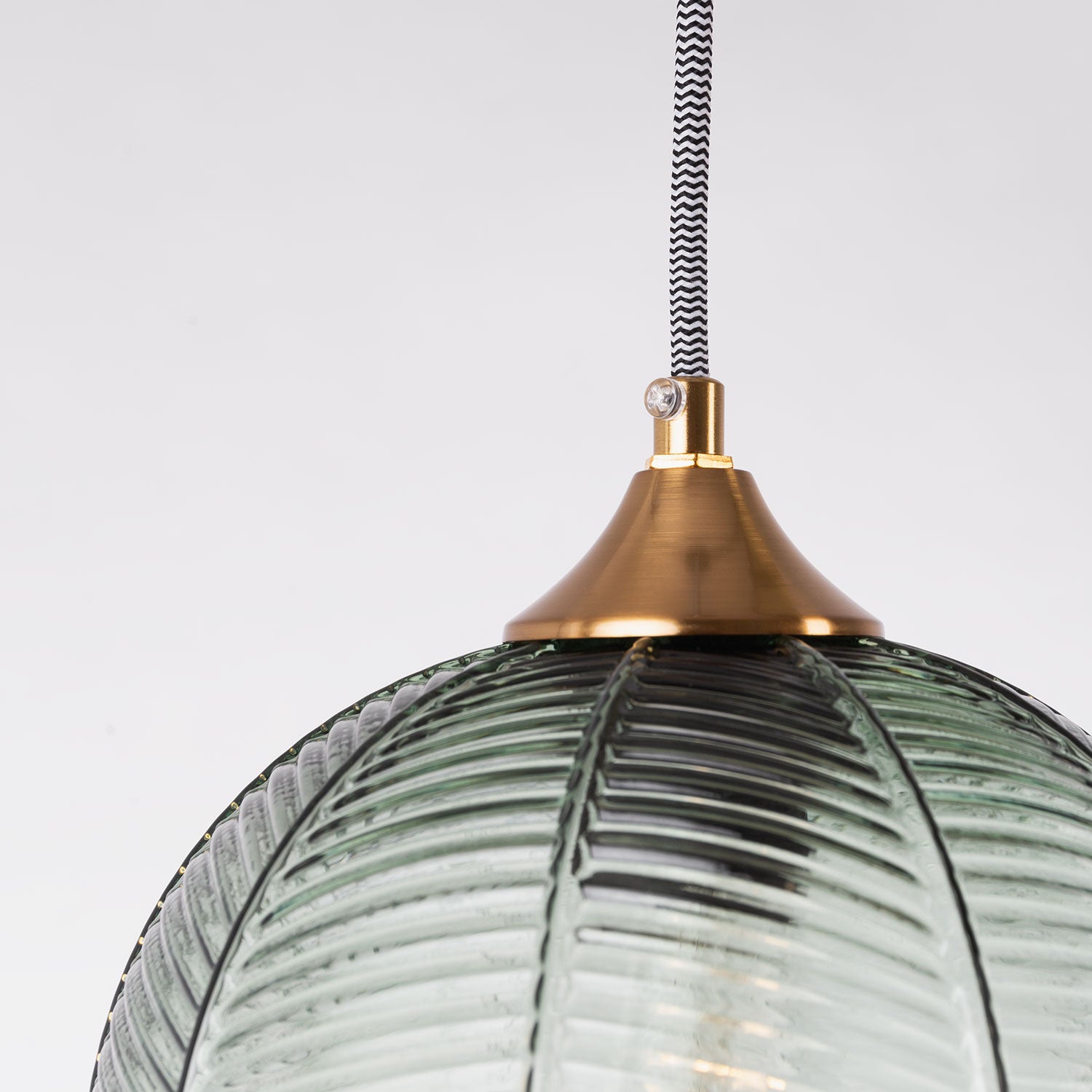 La Lámpara Colgante Cristal Probolinggo está fabricada en metal y cristal. Su pantalla hace que sea su principal característica de diseño, en la elaboración trabaja una forma esférica con sutiles relieves y un toque azulado que rememoran las lámparas clásicas de los años 20.