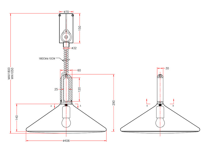 Admite Bombillas E27 con un diámetro máximo de Ø250mm