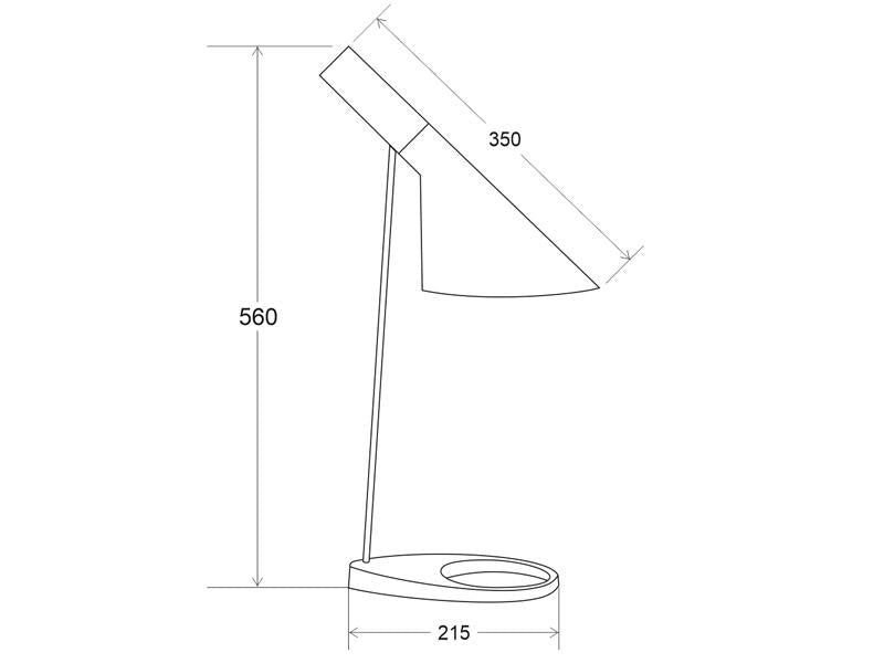 La lámpara de mesa Jacobsen dispone de una cabeza de luminaria basculante con una forma asimétrica diferenciada que determina sus características de iluminación.