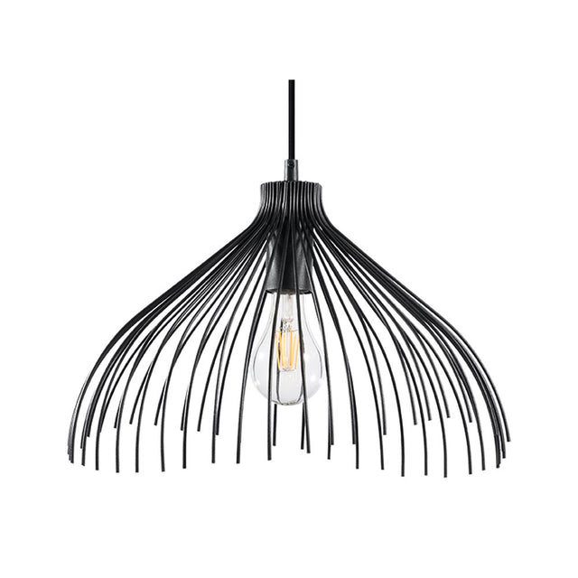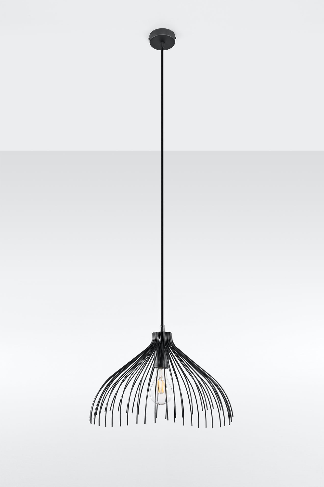 La notable colección de lámparas colgantes hechas de acero. El método de fabricación en una combinación con una forma bastante común significa que nadie puede sentarse en silencio por esta lámpara. Se ve especialmente bien en el interior del estilo loft.