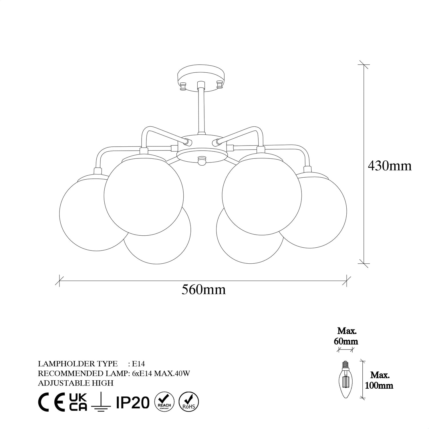 • Casquillo: 3xE14