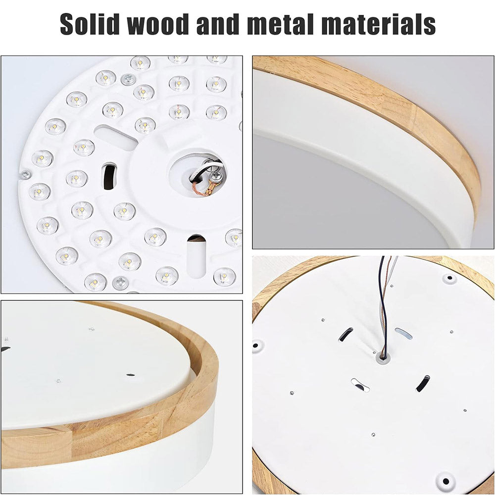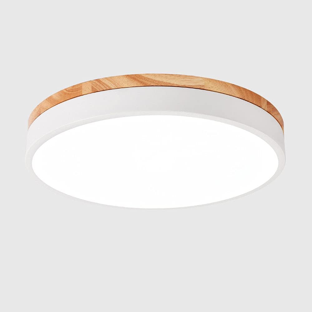 Luminaria de superficie minimalista realizada en aluminio lacado y aro de madera maciza con difusor en metacrilato traslucido.