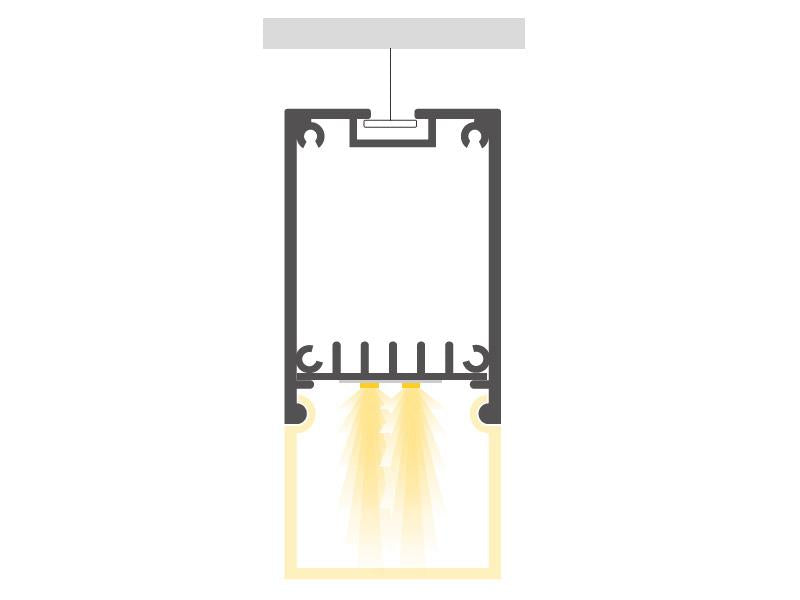 Lámpara Led para techo, una luminaria de suspensión lineal que ofrece una iluminación general a través del difusor de policarbonato opal que crea un ambiente perfecto para cualquier estancia.
