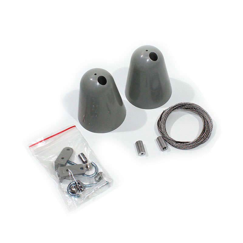 Kit de cables de acero, tornillos y embellecedores para la instalación de pantallas en todo tipo de techos