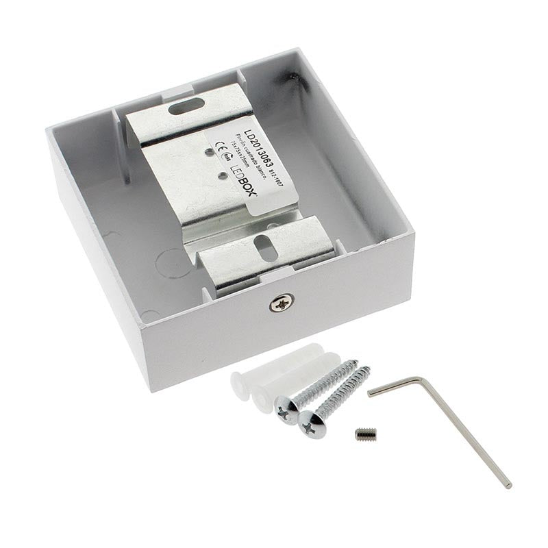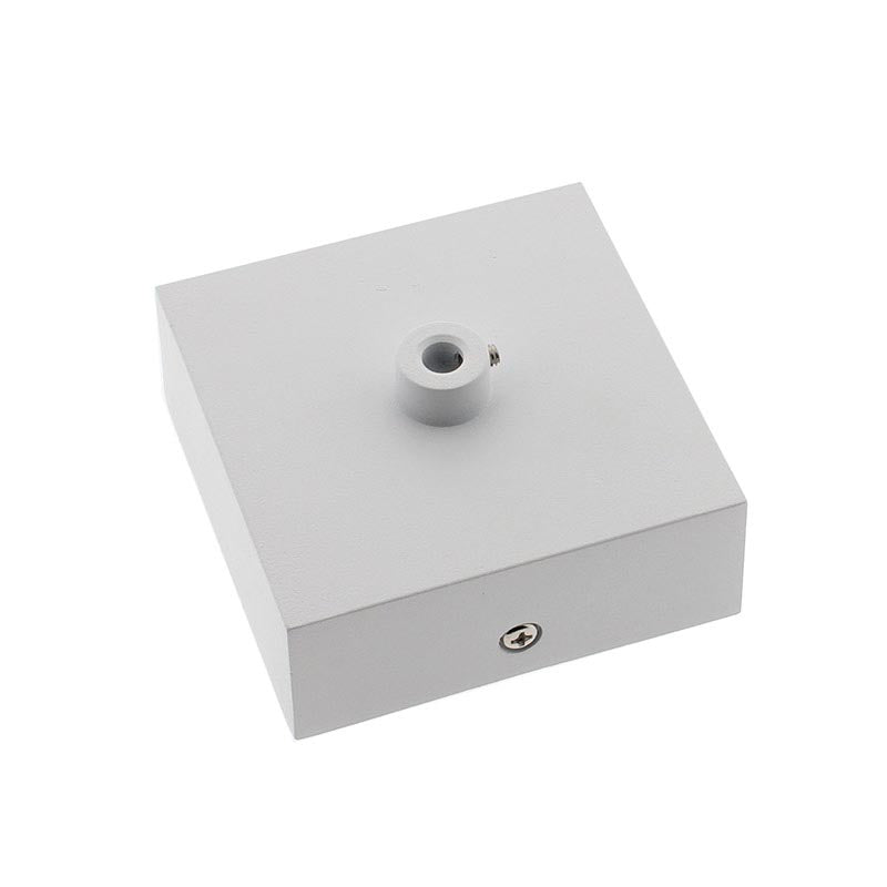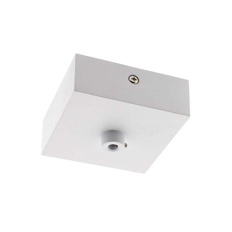 Florón cuadrado lacado color blanco mate, 80x80x28mm. Facilita la instalación y oculta los cables de conexión de las lámparas suspendidas.