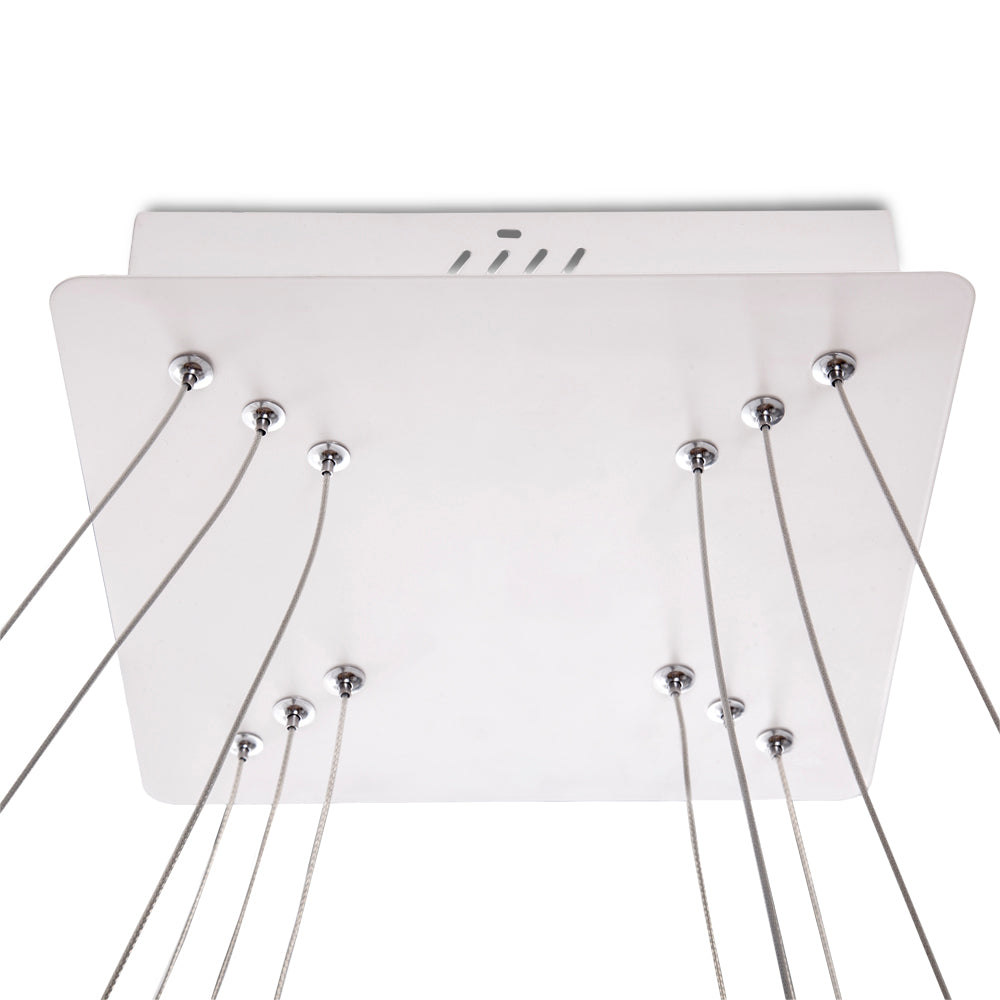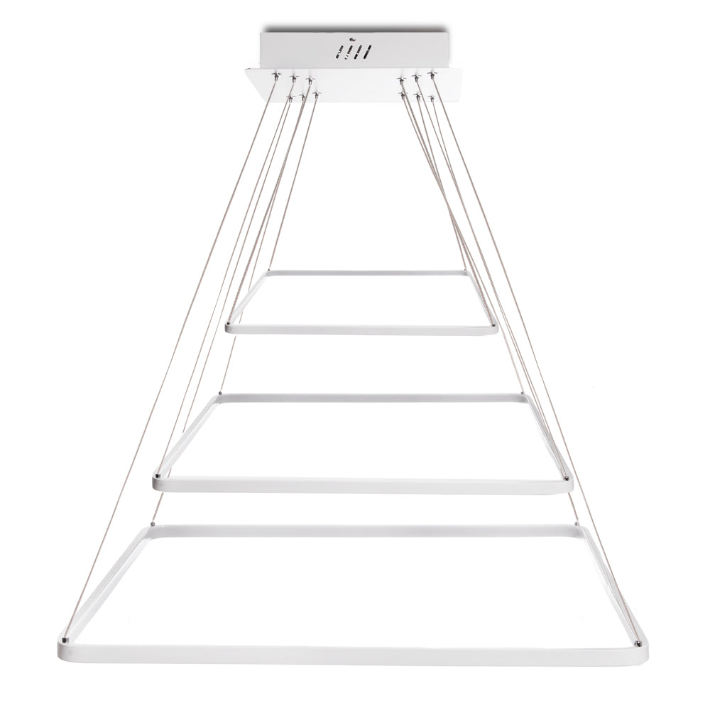 La lámpara suspendida de LEDs SQUARE, está compuesta por tres lámparas de LEDs en forma cuadrada suspendidas de 300mm, 400mm y 600mm con una base de instalación superficial en el techo. Es ideal para acentuar la iluminación en los lugares donde se precisa, y crear un ambiente único. Puede ser instalada directamente a las tomas de corriente suministradas por la red eléctrica (220-245VAC) con una frecuencia de servicio de 50/60Hz.
