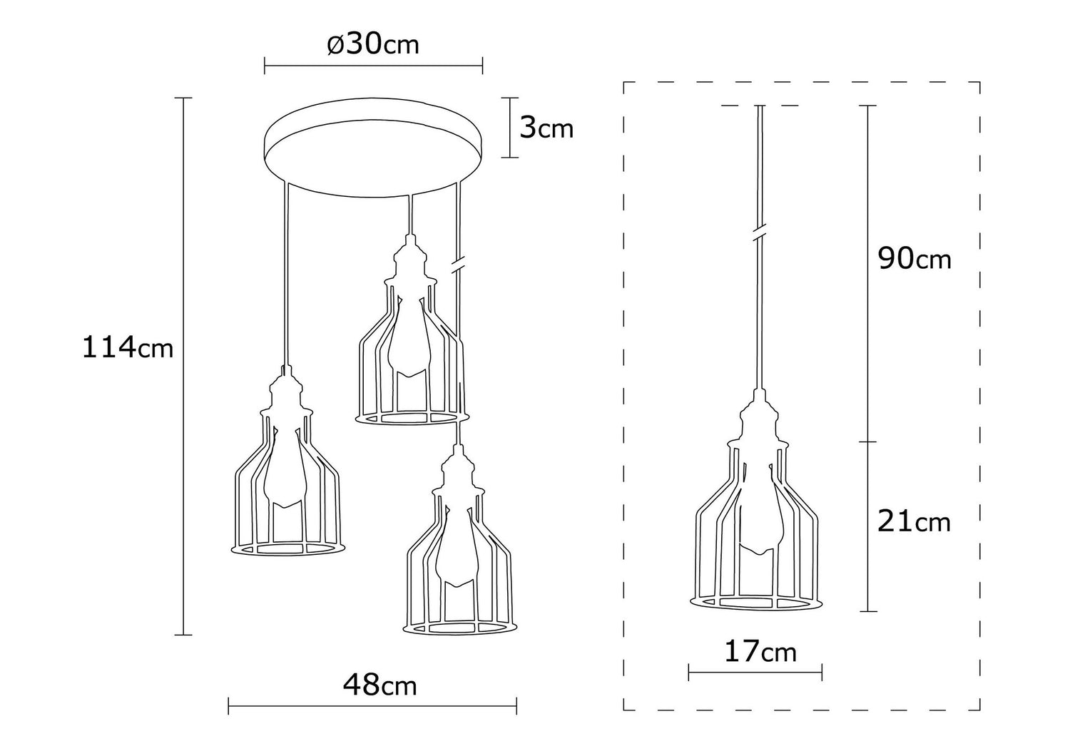 Lámpara Colgante estilo industrial "Alacati" Negro 3 x E 27 Sin Bombilla [OPV-525NOR1504]
