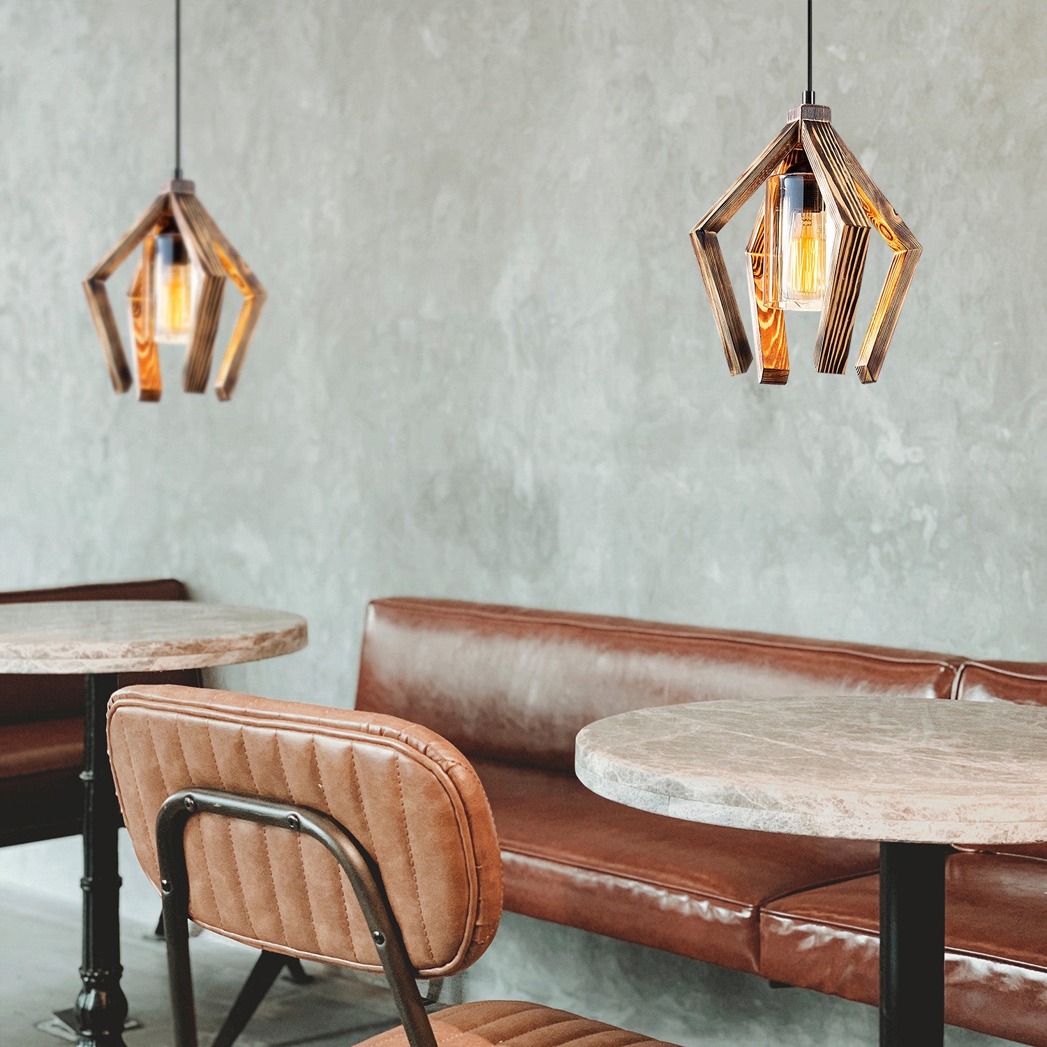 Lámpara Colgante de madera "Erebos" Negro/Madera 1 x E 27 Sin Bombilla [OPV-521SHN3120]