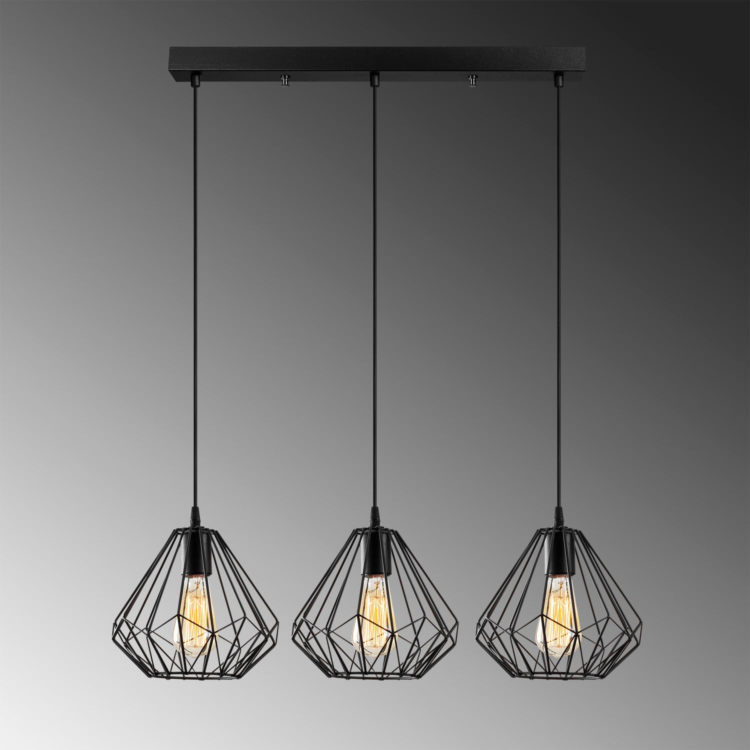 Lámpara Colgante estilo industrial "Diamond" Negro 3 x E 27 Sin Bombilla [OPV-521SHN3393]