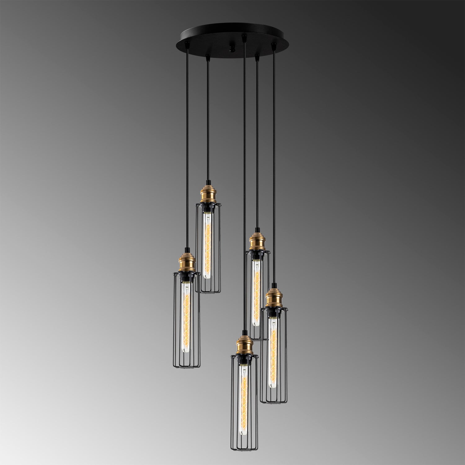 Lámpara Colgante estilo industrial "Zumra" Negro 5 x E 27 Sin Bombilla [OPV-521SHN3401]
