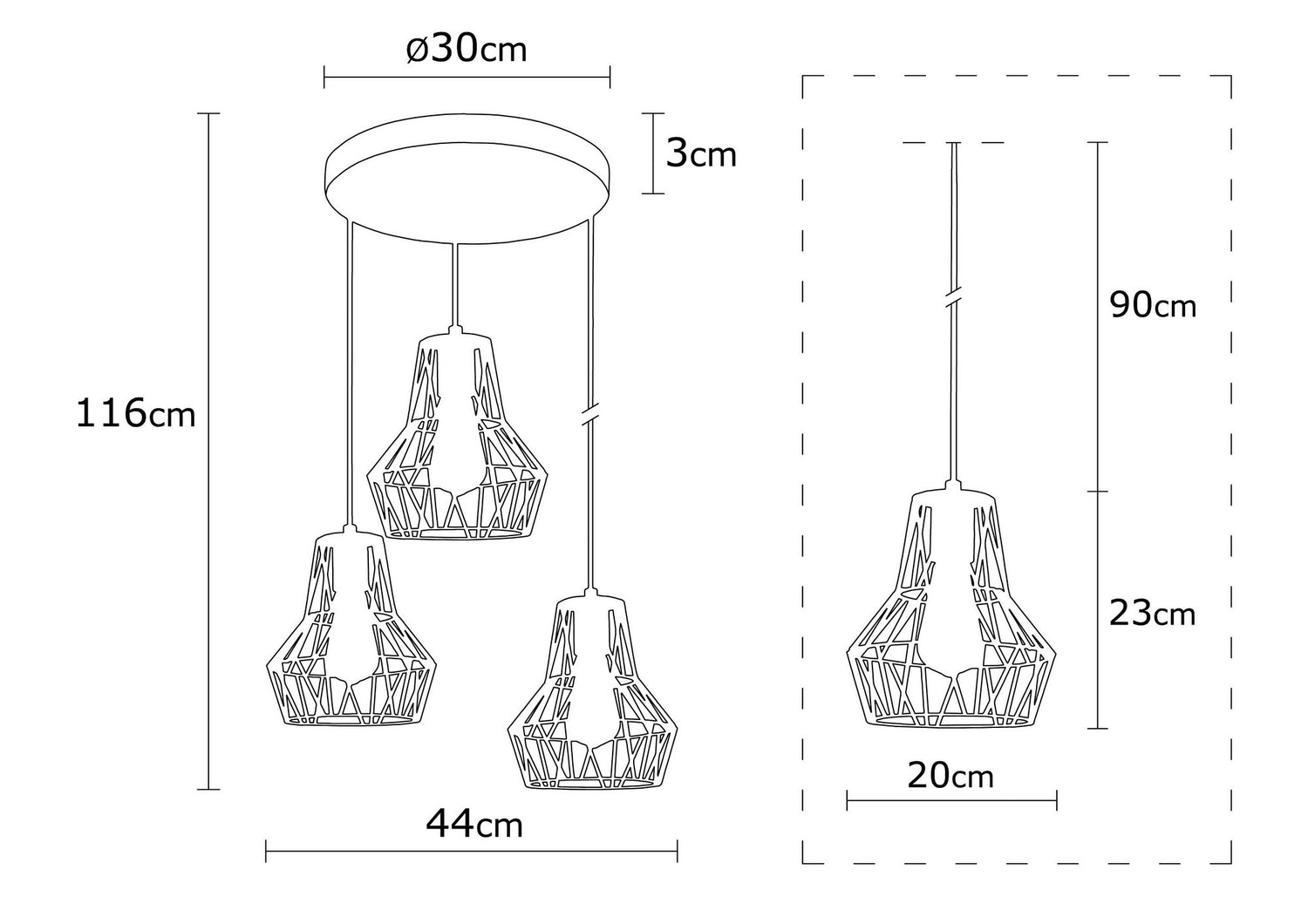 Lámpara Colgante estilo industrial "Tortum" Negro 3 x E 27 Sin Bombilla [OPV-525NOR1488]