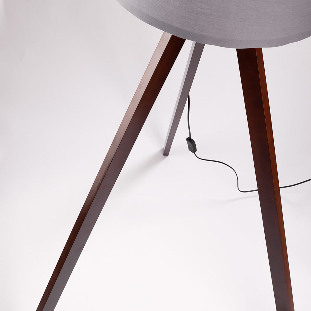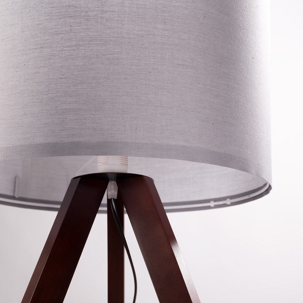 Cuenta con un diseño sencillo formado por un armazón de 3 patas de madera de gran calidad y una pantalla o tulipa de tela en forma cilíndrica que permite el paso de la luz, creando un tono acogedor. Es la opción perfecta para ambientar salones, salas de estar o incluso restaurantes. Además, integra un pequeño interruptor para encender y apagar rápidamente sin necesidad de desconectar el conector.