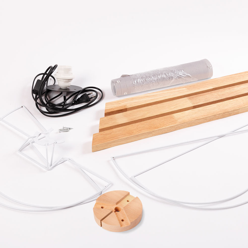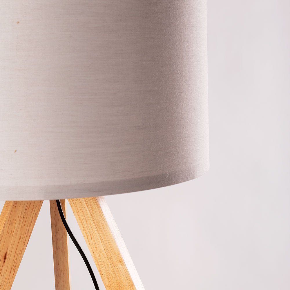 Cuenta con un diseño sencillo formado por un armazón de 3 patas de madera de gran calidad y una pantalla o tulipa de tela en forma cilíndrica que permite el paso de la luz, creando un tono acogedor. Es la opción perfecta para ambientar salones, salas de estar o incluso restaurantes. Además, integra un pequeño interruptor para encender y apagar rápidamente sin necesidad de desconectar el conector.