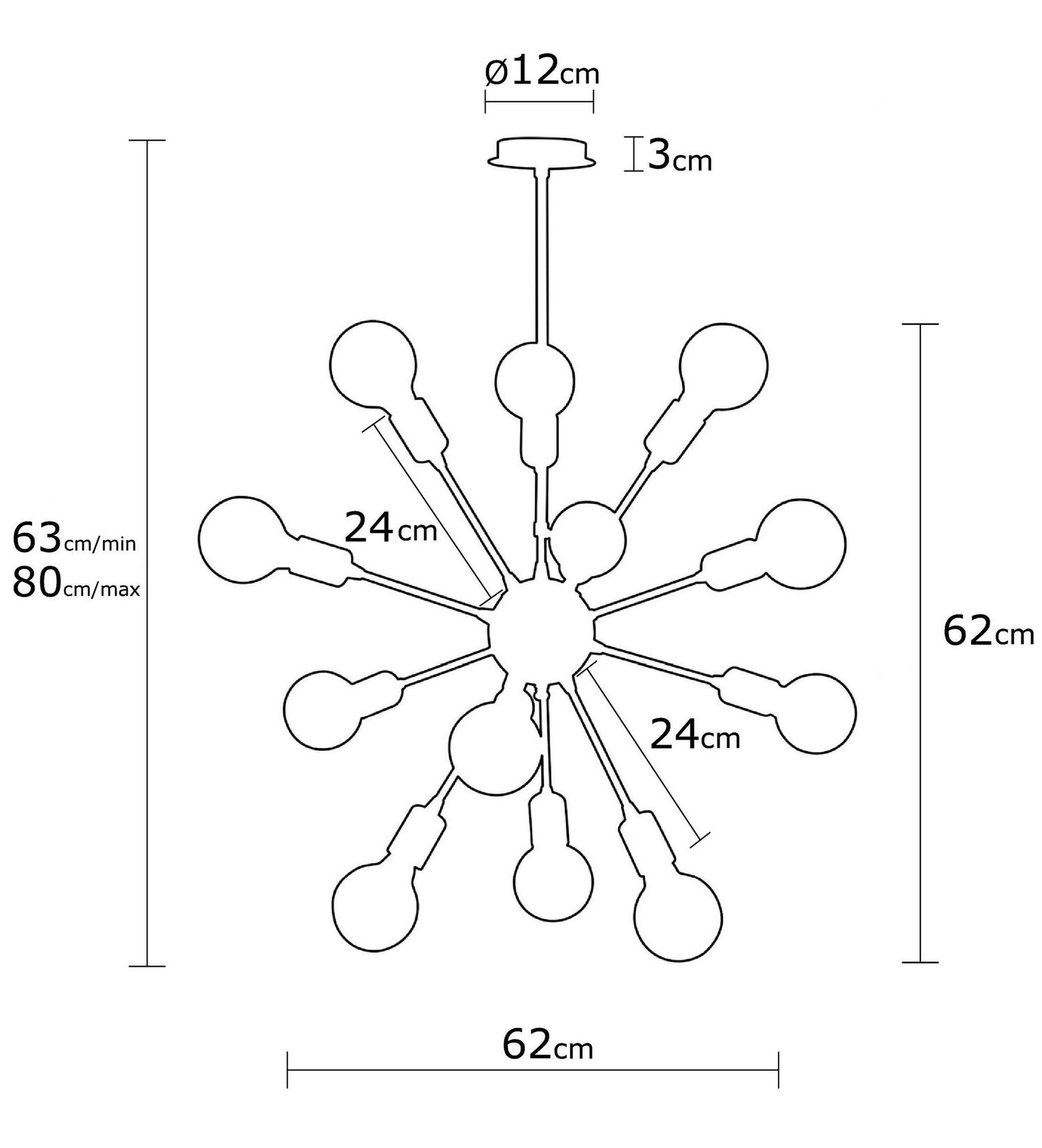 Lámpara de Techo estilo moderno "Harput" Negro 12 x E27 Sin Bombilla [OPV-525NOR1624]