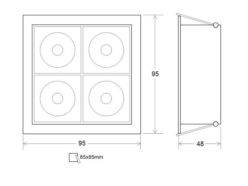 El empotrable dispone de un sistema de alta reflexión, para maximizar los luxes que entrega la luminaria al mismo tiempo que impide el deslumbramiento producido por el diodo LED.
