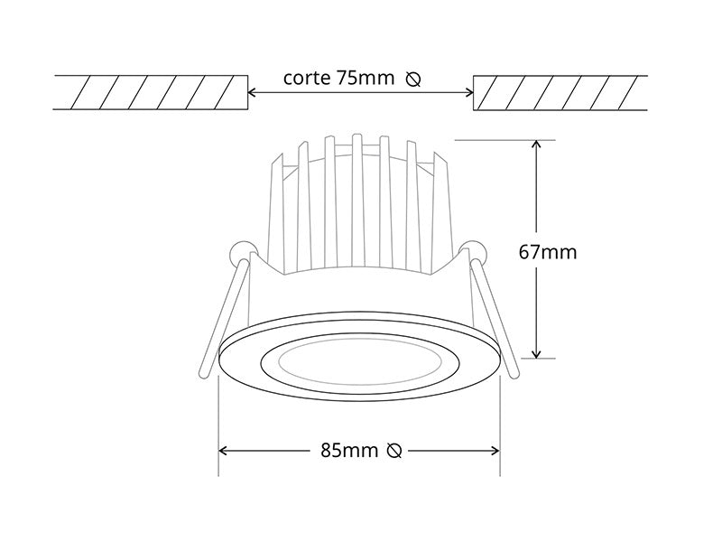 Luminaria empotrable de la más alta calidad para los proyectos más exigentes. Downlight Led con Chip Bridgelux y driver GXTronic con selector de color de luz (blanco cálido, neutro o frío) y selector de potencia (5, 8 ó 12W). 9 opciones en un solo producto.