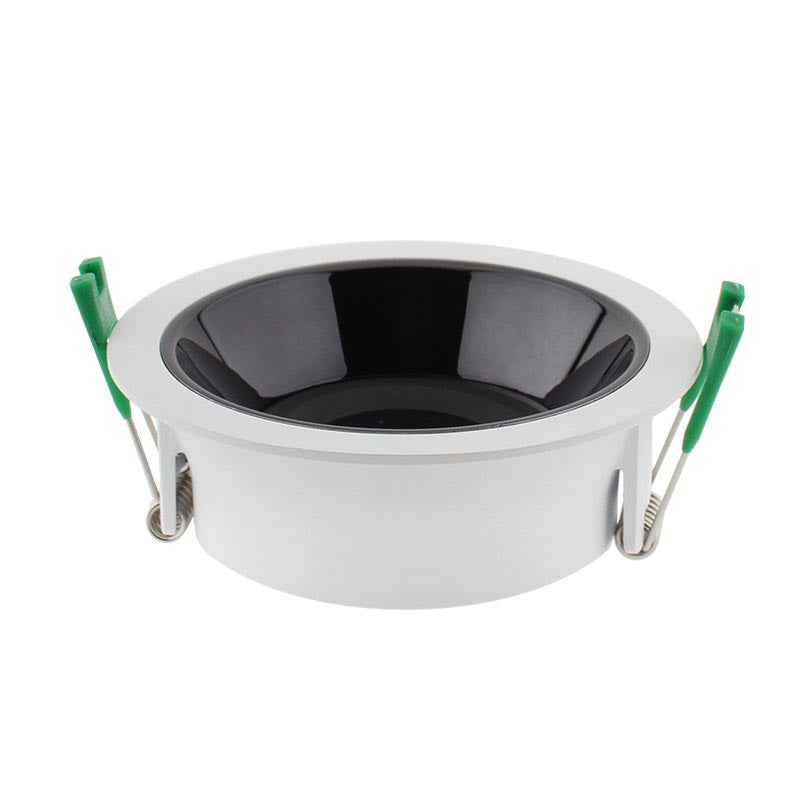 Housing compatible con el foco profesional HOTEL SPOT 9-15w de Ø55mm de diámetro. Con una gran calidad de sus materiales y acabados en lacado en color blanco mate y reflector pulido en negro titanio. Basculante. Altura 35mm para alojar el spot led.