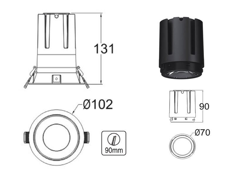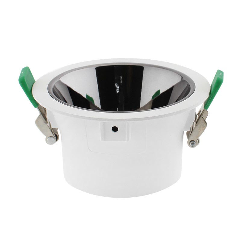 Housing compatible con el foco profesional HOTEL SPOT 24w de Ø70mm de diámetro. Con una gran calidad de sus materiales y acabados. Lacado en color blanco mate y reflector pulido en negro titanio. Fijo. Altura 55mm para alojar el spot led.