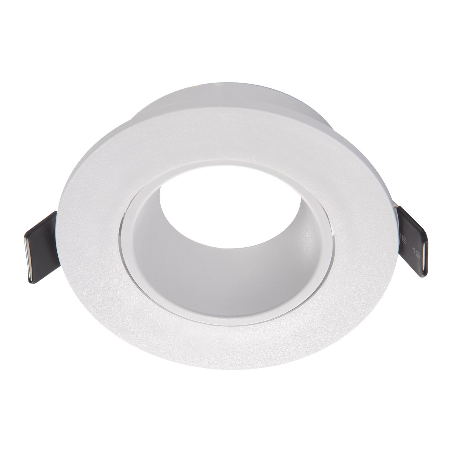 Aro fijo para lamparas LED dicroicas GU10 - MR16, fabricado en termoplástico (resistencia al fuego V0) de diseño refinado, elegante y exclusivo. Es perfecto para una nueva obra o para cambiar los focos. Ideal para espacios del hogar como la cocina, baño, porches por el material en que está fabricado que evita la oxidación. Producto exclusivo para Lamparas LED.